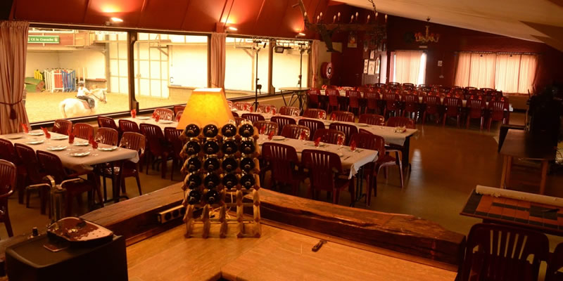 - à côté de la cafétéria se trouve une salle avec tout le confort nécessaire : bar, salon, toilettes, cuisine,... Elle peut être louée pour toute festivité : mariage, communion,... ou pour des soirées.La salle peut contenir 80 à 90 personnes assises.