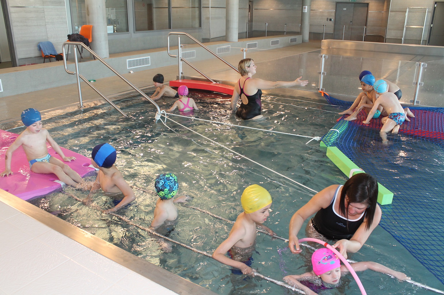 Dans le circuit, chaque enfant évolue à son propre rythme. Le « jardin d’accoutumance » peut accueillir en même temps une vingtaine d’élèves de niveaux d’aisance aquatique différents.