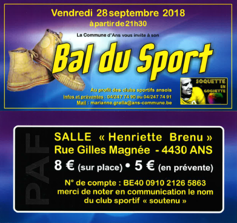 La commune d'Ans vous invite au bal du sport, édition 2018, le 28 septembre !